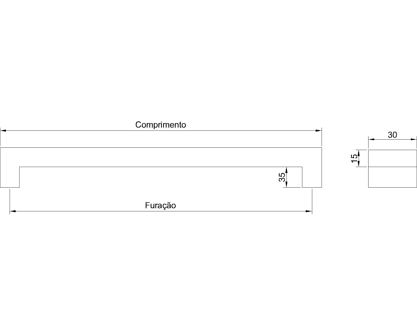 Puxador Duplo ALÇA RETANGULAR Aço Inox Polido Perfil 30x15mm Furação 800mm Comprimento 830mm