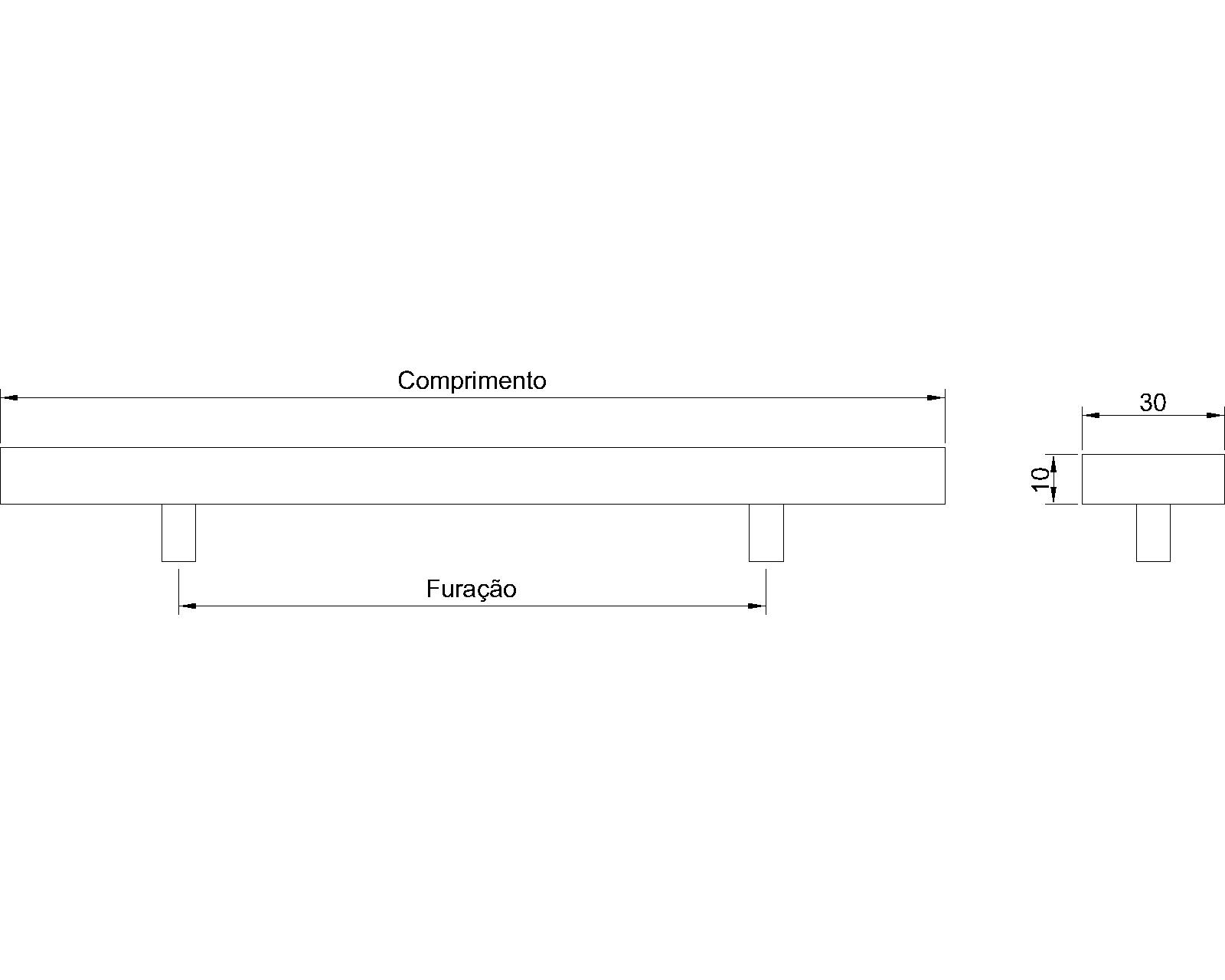 Puxador Duplo TRADICIONAL RETANGULAR Aço Inox Polido Perfil 30x10mm Furação 500mm Comprimento 800mm